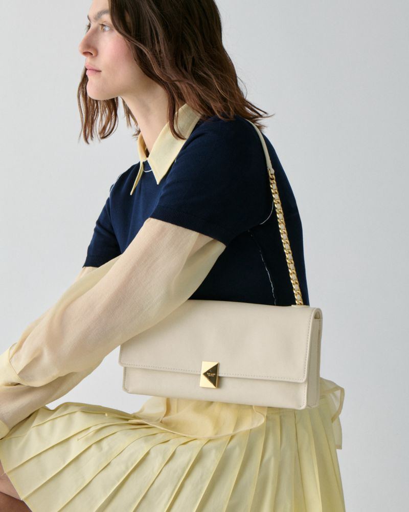 Perennially chic with luxe finishing touches, our Deco collection features elevated staples for both everyday and special occasions. Our newest addition—a softer, unstructured chain strap bag—is made from fine grain leather and detailed with our Art Deco-inspired K hardware.