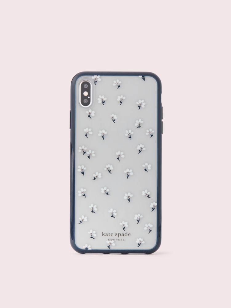 we love that this clear resin phone case adds a layer of protection against drops and scratches. we also love how the navy border punctuates the daisy print so beautifully. make sure to zoom in closer on each bloom. we embellished the centers with sparkly silver jewels.