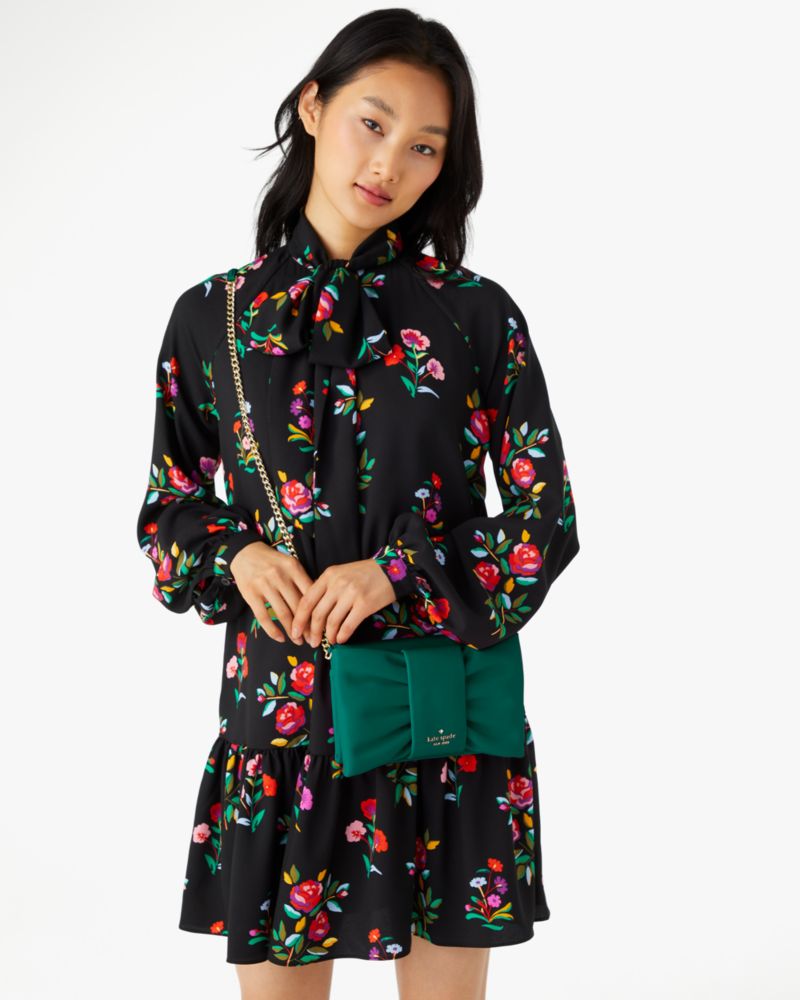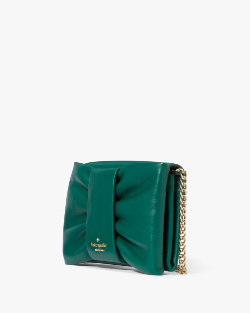 Kate Spade,Millie Bow Flap Crossbody,Clutch,Metal Material,Logo,Ruched,Metal,Day Party,Emerald