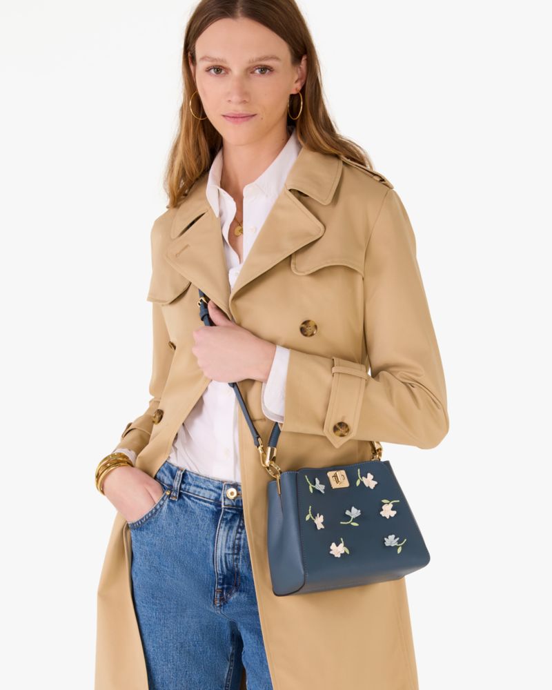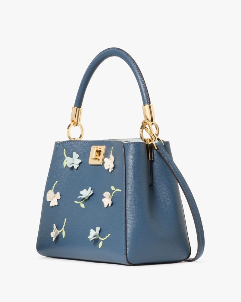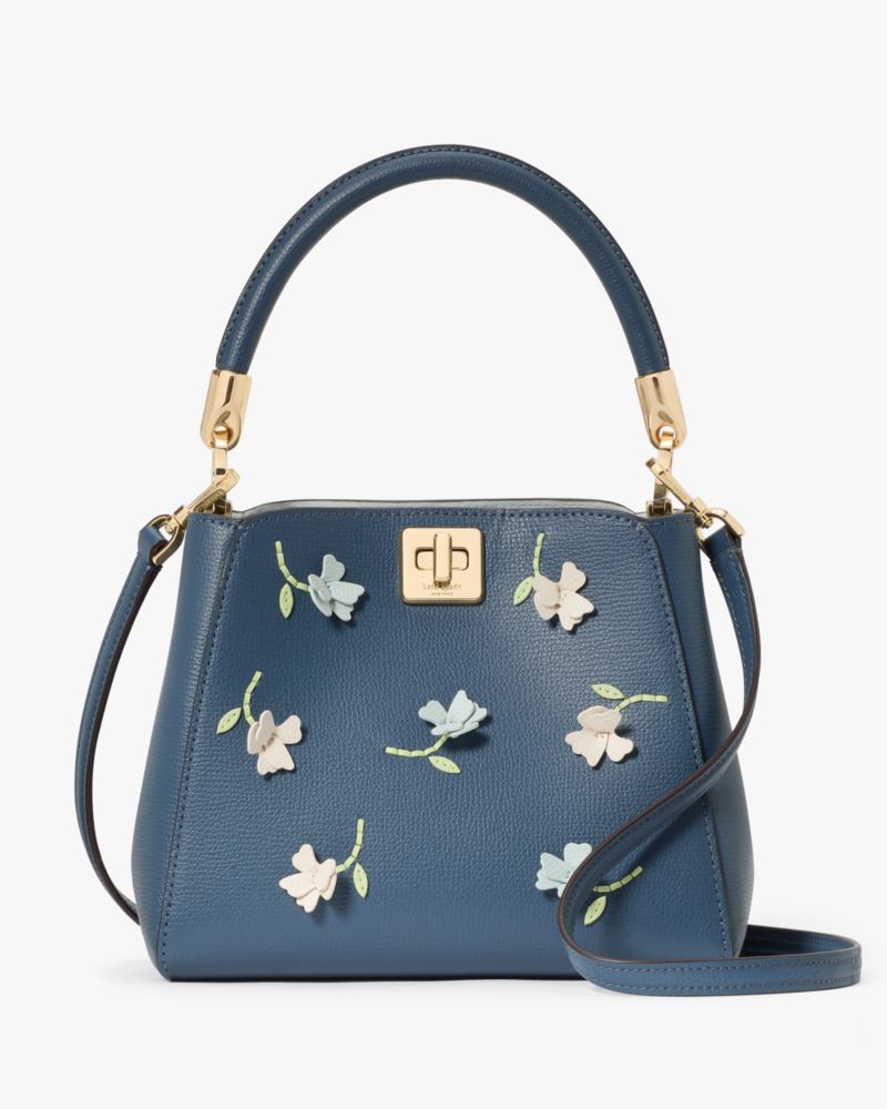Kate Spade,Phoebe Applique Small Top Handle Bag,Leather,Bucket,Applique,Day Party,Navy