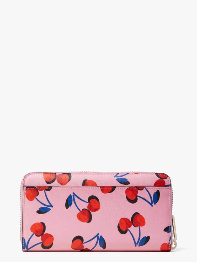 our spencer zip-around continental wallet gets a playful spin in cherry-print soft saffiano leather. we kept it durable against drops and scratches so it'll keep its luxe look.