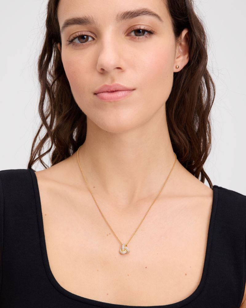 Kate Spade,Double Knot Pave Pendant,Single Strand,Cubic Zirconia,Gem Embellishment,Knot,Logo,Gold Metal,Casual,Gold