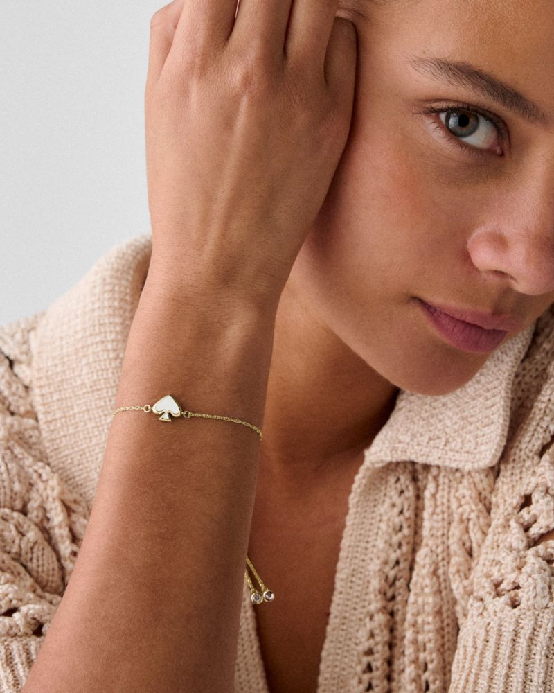 Our style signature might just be your new favorite. This Everyday Spade bracelet lends a polished touch to your office-to-evening looks, thanks to a delicate gold chain and dainty enamel accent. An adjustable slider lets you tailor the fit, so your stack stays exactly where you want it—whether you're sporting it solo or layering it with your watch or bangle stack.
