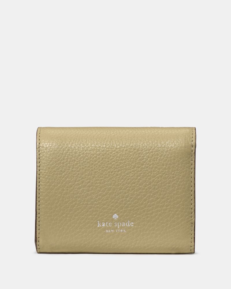 Kate Spade,Kayla Small L-Zip Wallet,Leather,Bi Fold,Metal Material,Metal,Logo,Gold Metal,Casual,