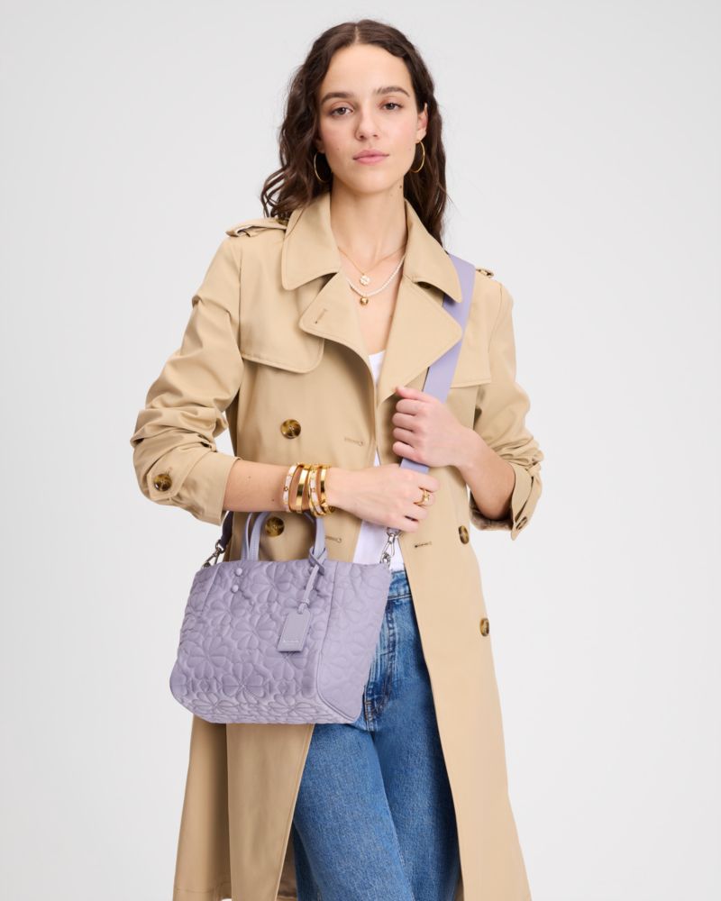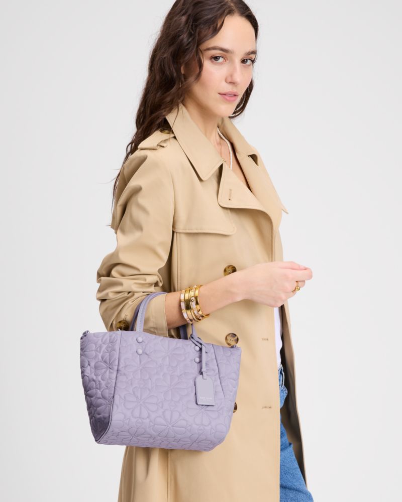 Kate Spade,Tilly Quilted Small Tote Bag,Recycled Polyester,Tote,Adjustable,Casual,Lavender
