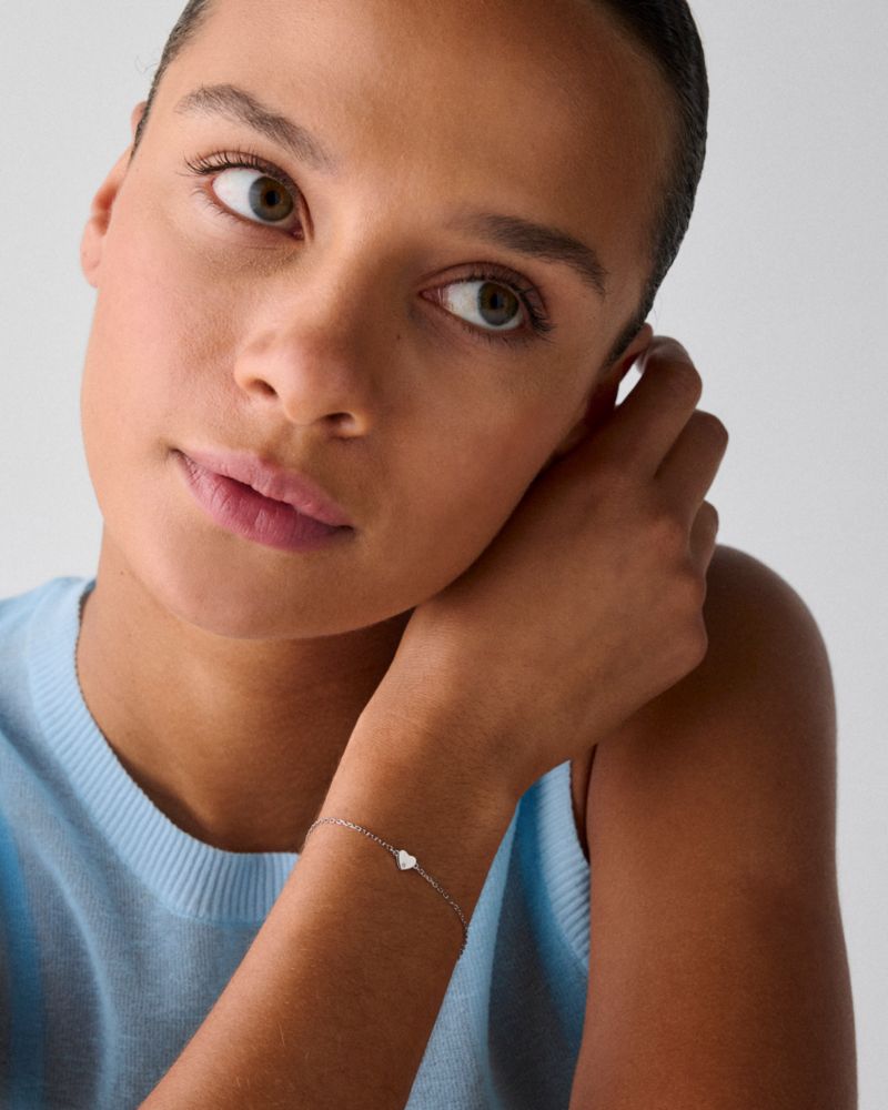 Kate Spade,You're A Gem Metal Mini Heart Bracelet,Gemstone,Heart Embellishment, Crystal Embellishment, Logo,Gift Item,Adju...,Silver
